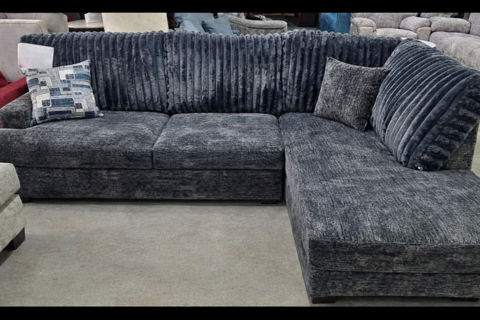 6129 - Sofa with Chaise in Galactic Charcoal